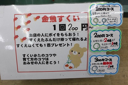 上手くいけば全部すくえちゃうかも!??(全くゼロすくいは2匹お渡し)コース。