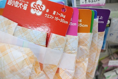 「マナーおむつ」(パンツタイプ)のサイズサンプルや
