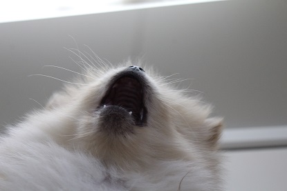 枕にのって寝たいけど、「ダメ」って。