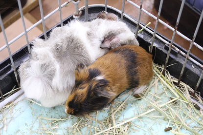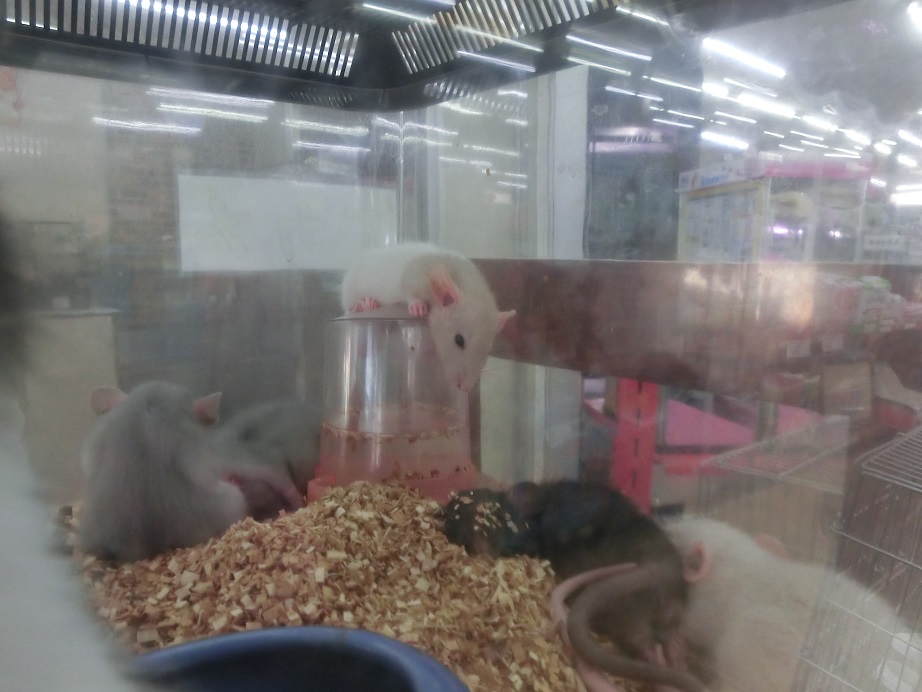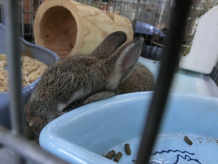 お水いれの上で寝ているラットを発見。これでも寝ています