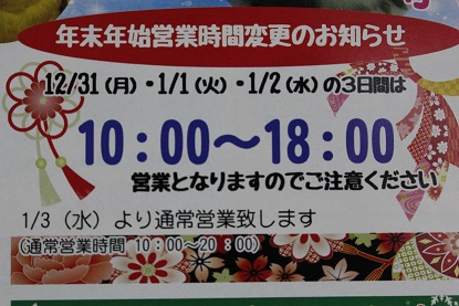 の3日間の営業時間が