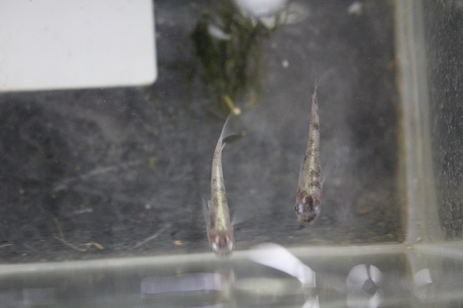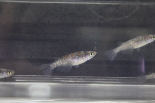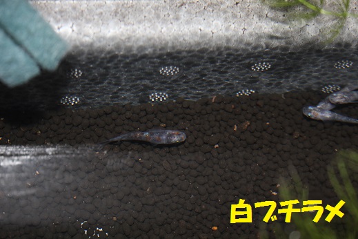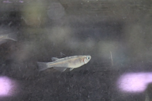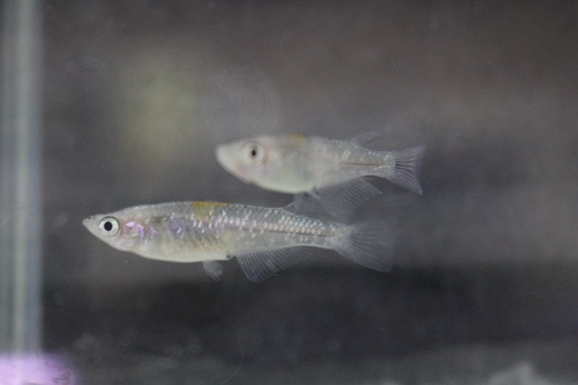 白いからだに黒いぶちが入るメダカですが