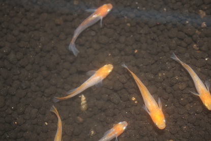 琥珀メダカに薄っすらピンクが入っております。。