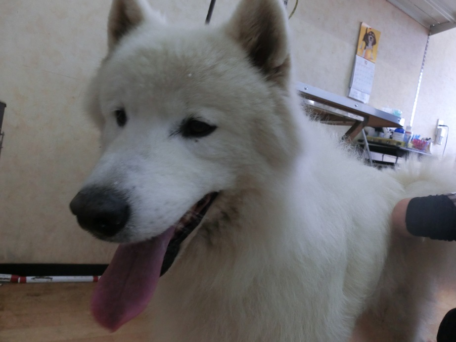 この前、トリミングでサモエドのコが来ていました。